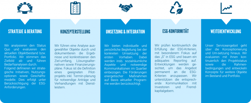 Es ergeben sich signifikante Wertbeiträge und Renditesteigerungen z. B. durch Bestandswerterhaltung und –steigerung, verbesserte Vermarktbarkeit bzw. höhere Mieteinnahmen, geringere Mieterfluktuation und Renovierungskosten, Leerstandsreduzierung im Wohnungsbestand oder auch Nutzungsänderungen leerstehender Büroflächen, verbesserter Zugang zu Fremdkapital und Zinssenkungen durch ESG-Konformität und höhere Asset-Values, Nutzung von Investitions-Förderprogrammen, Entwicklung neuer Service-Geschäftsmodelle und Einnahmequellen, Digitalisierung zur verbesserten Mieterkommunikation und Kostenreduzierung, Erhöhung der regionalen Reputation und Übernahme gesellschaftspolitischer Verantwortung.